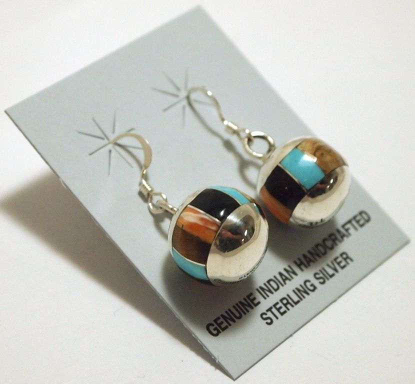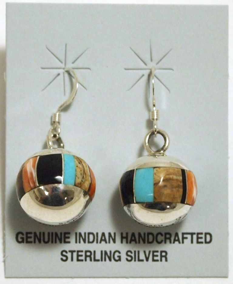Zuni Multi-Stone Inlay Sterling Silver Sphere French Hook Earrings - Edison Yazzie