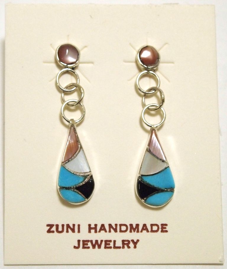 Zuni Multi-Stone Inlay Sterling Silver Teardrop Post Earrings - Sarah Bawani