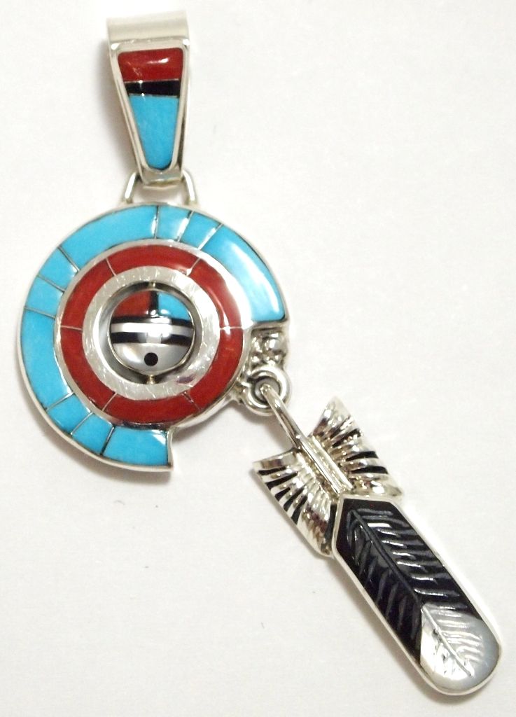 Zuni Multi-Stone Inlay Sun Face Spinner Sterling Silver Pendant - Don Dewa