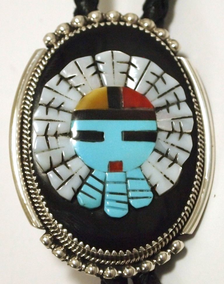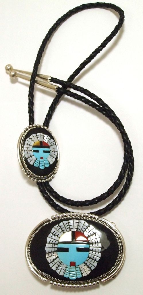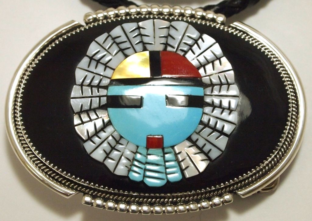 Zuni Multi-Stone Inlay Sun Face Sterling Silver Bolo & Buckle Set - Beverly Etsate