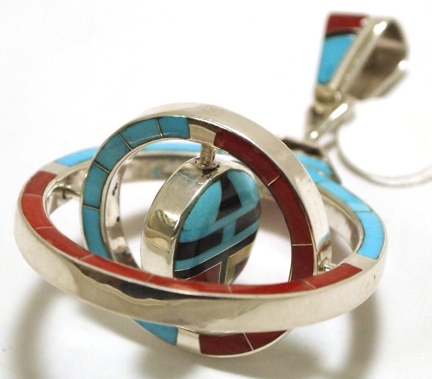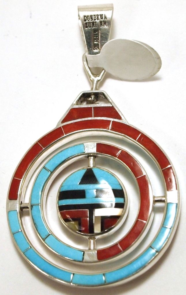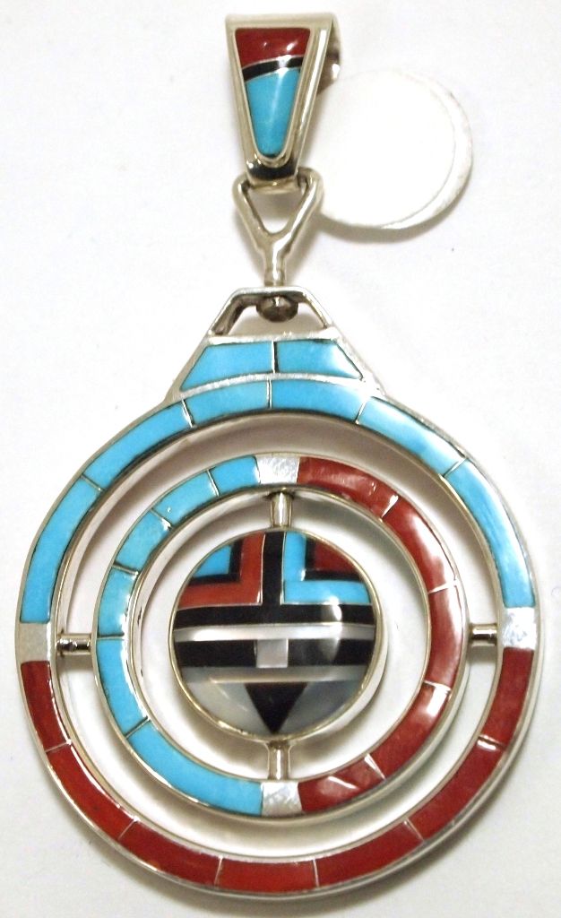 Zuni Multi-Stone Inlay Sun Face Sterling Silver Gyroscopic Pendant - Don Dewa
