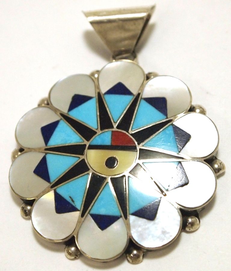 Zuni Multi-Stone Inlay Sun Face Sterling Silver Pendant - Delwin Gasper