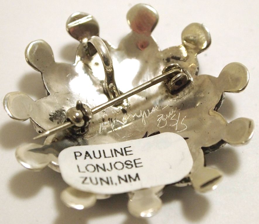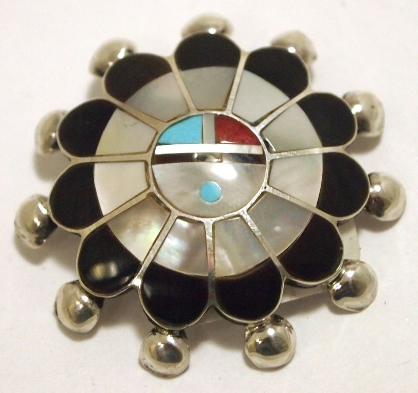 Zuni Multi-Stone Inlay Sun Face Sterling Silver Pendant & Pin - Pauline Lonjose
