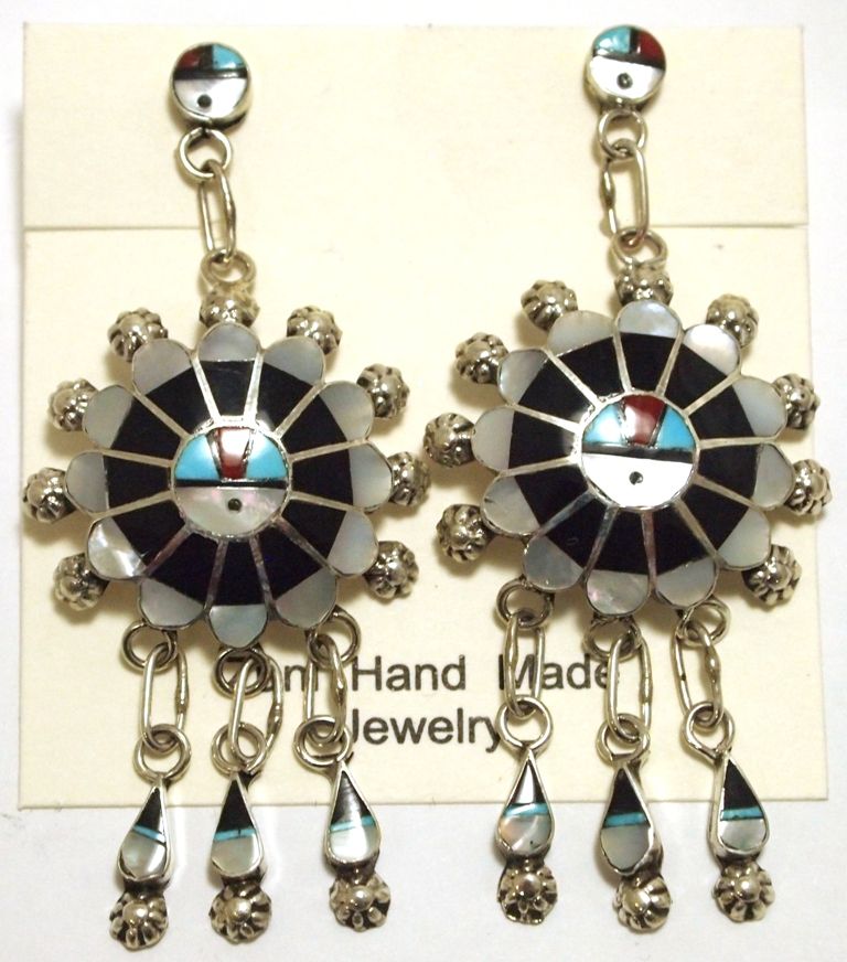 Zuni Multi-Stone Inlay Sun Face Sterling Silver Post Earrings - Abel Soseeah
