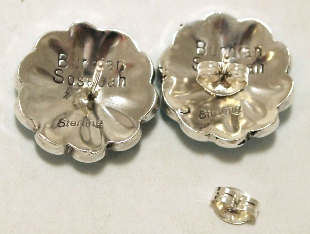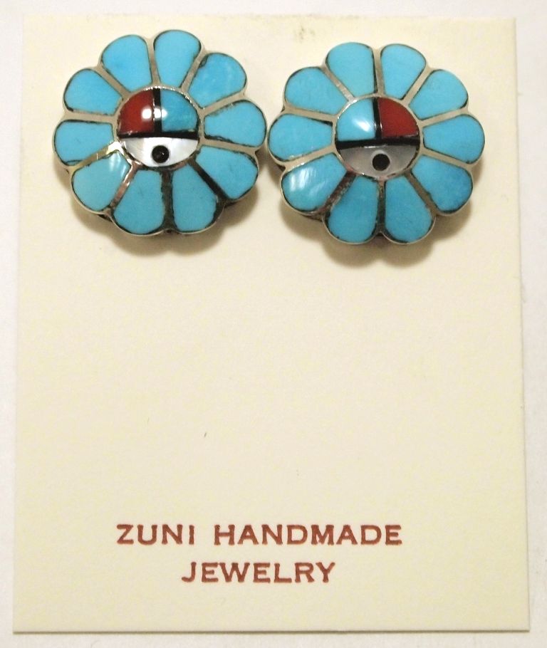 Zuni Multi-Stone Inlay Sun Face Sterling Silver Post Earrings - Burdian Soseeah