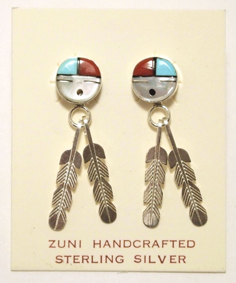 Zuni Multi-Stone Inlay Sun Face Sterling Silver Post Earrings - Kimberly Kaamasee
