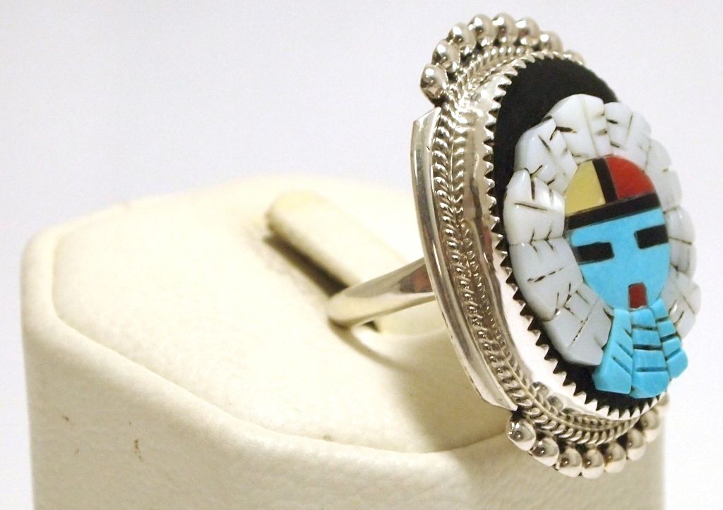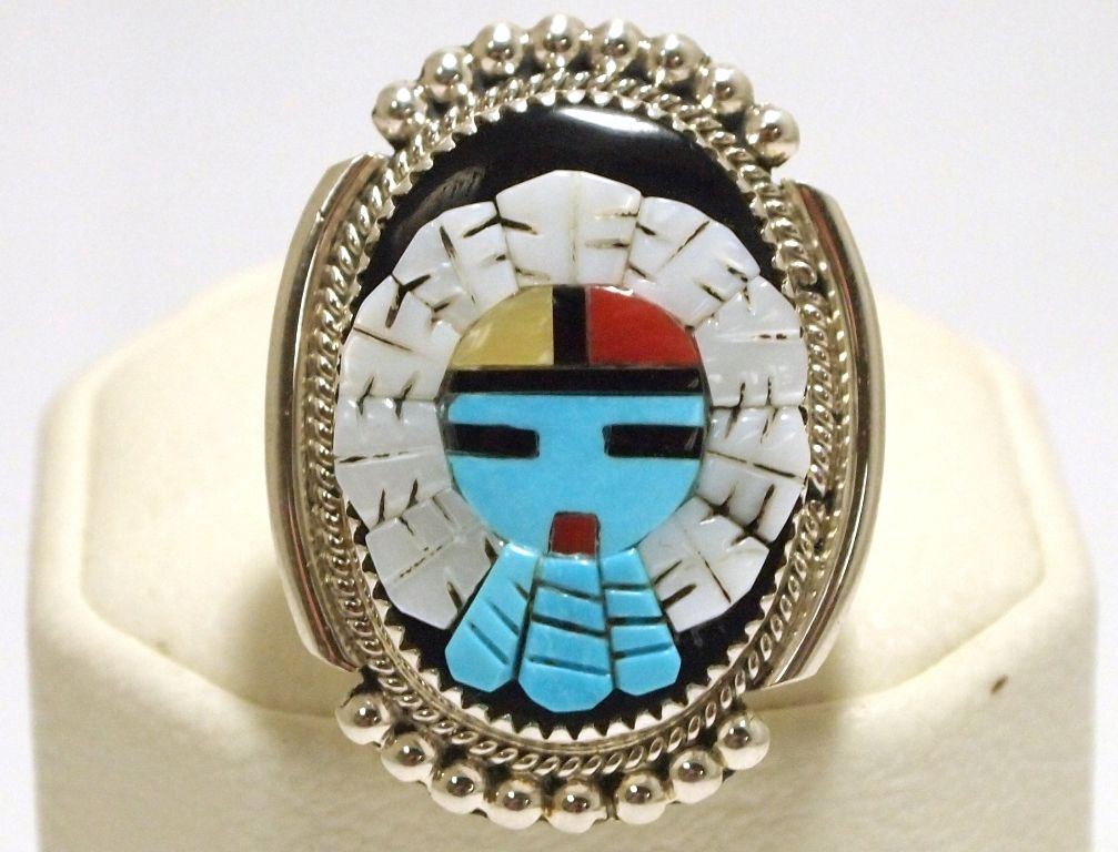 Zuni Multi-Stone Inlay Sun Face Sterling Silver Women's Ring - Beverly Etsate