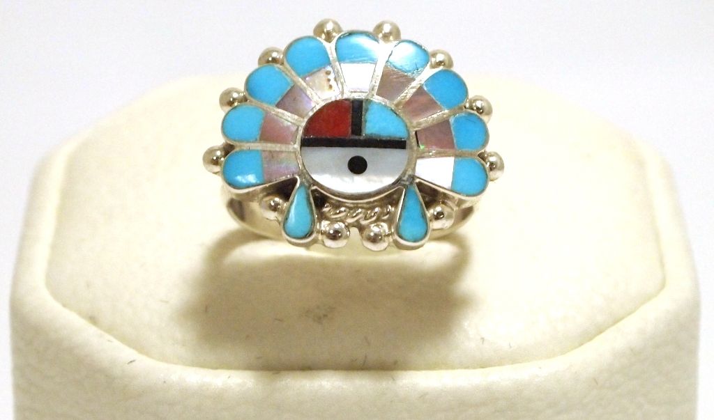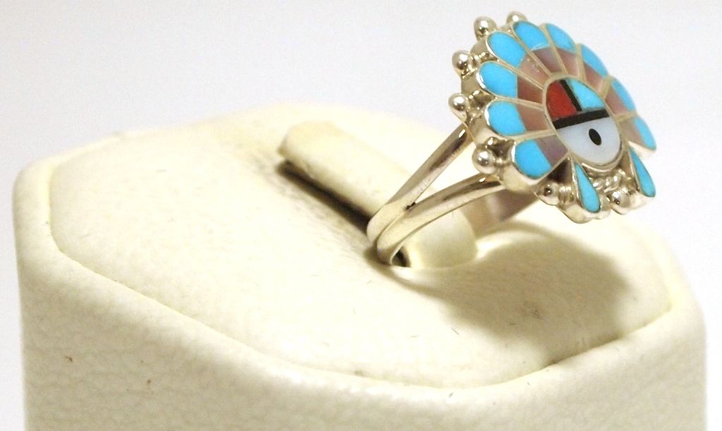 Zuni Multi-Stone Inlay Sun Face Sterling Silver Women's Ring - Emma Romancito
