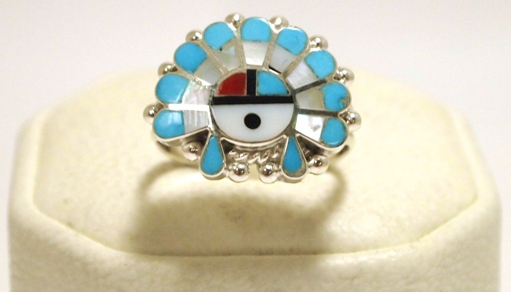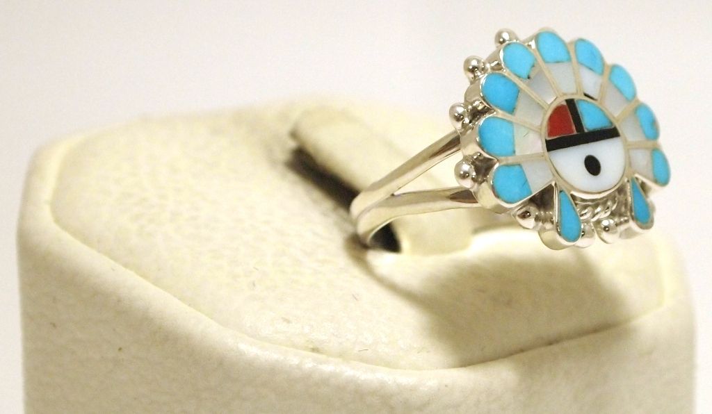 Zuni Multi-Stone Inlay Sun Face Sterling Silver Women's Ring - Emma Romancito