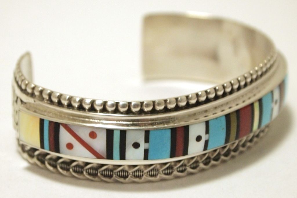 Zuni Multi-Stone Inlay Sun Faces Sterling Silver Cuff Bracelet - Ricky & Lucy Vacit