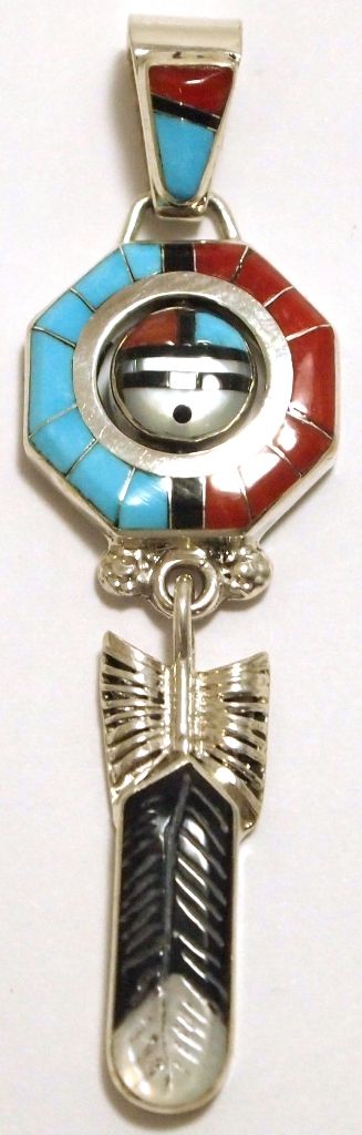 Zuni Multi-Stone Inlay Sunface Spinner Sterling Silver Pendant - Don Dewa