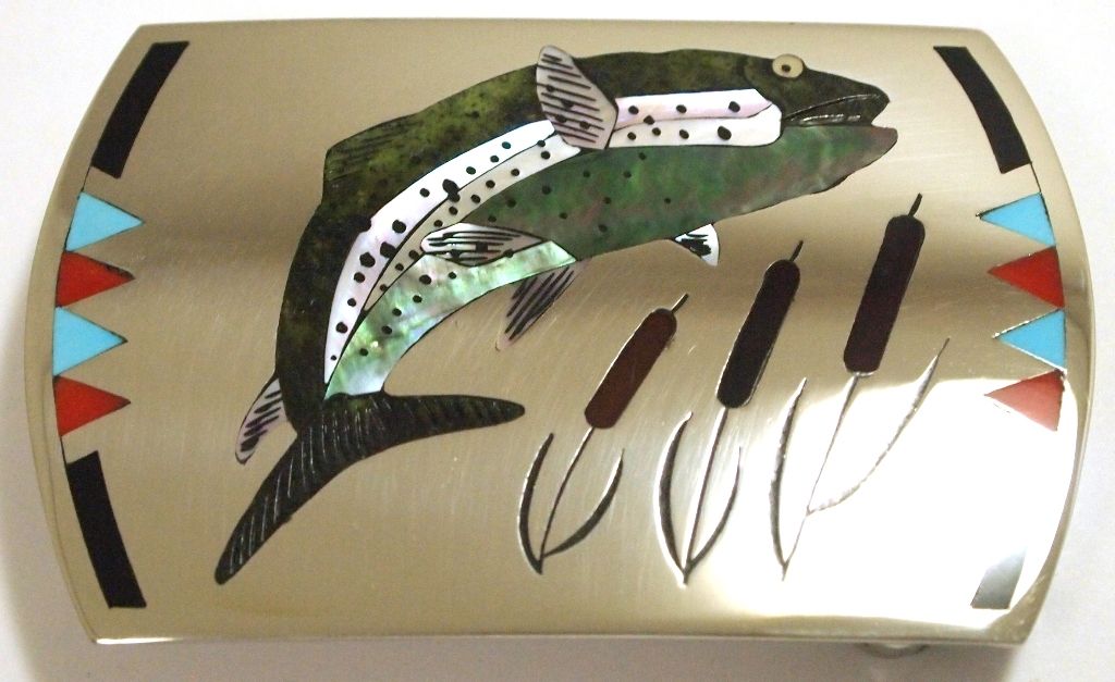 Zuni Multi-Stone Inlay Trout Sterling Silver Buckle - Dale Edaakie
