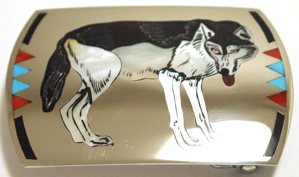 Zuni Multi-Stone Inlay Wolf Sterling Silver Buckle - Dale Edaakie