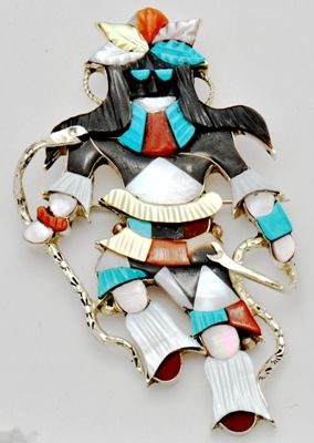 Zuni Multi-Stone Kachina Pendant & Pin - Jonathan Beyuka