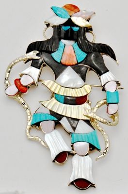 Zuni Multi-Stone Kachina Pendant & Pin - Jonathan Beyuka