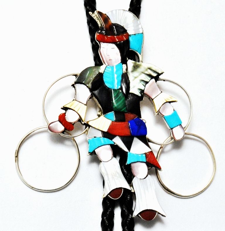 Zuni Multi-Stone Kachina Sterling Silver Bolo Tie - Jonathan Beyuka
