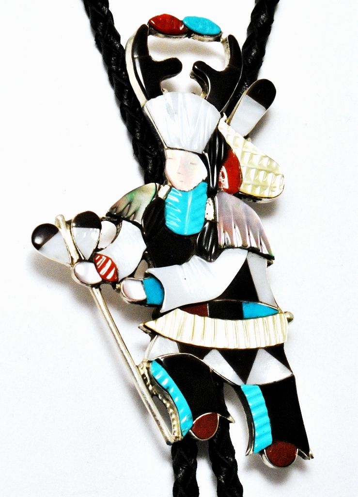 Zuni Multi-Stone Kachina Sterling Silver Bolo Tie - Jonathan Beyuka