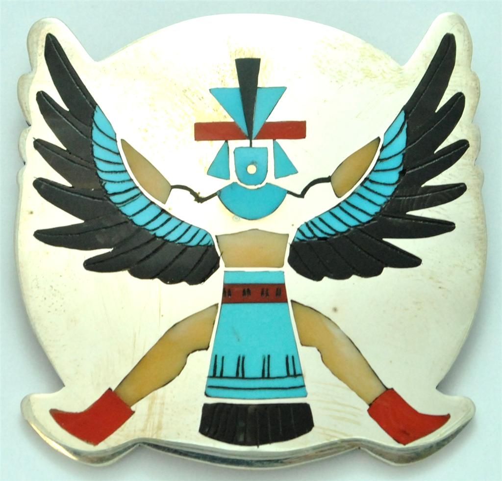 Zuni Multi-Stone Knife Wing Large Pendant & Pin - Harlan & Monica Coonsis