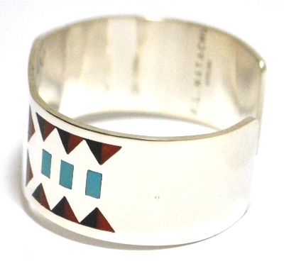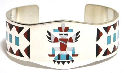 Zuni Multi-Stone Knifewing Kachina Sterling Silver Cuff Bracelet - Fred & Lolita Natachu