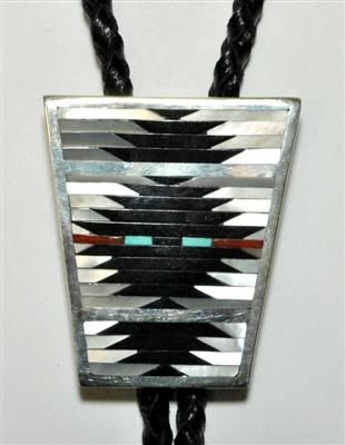 Zuni Multi-Stone Large Trapezoid Sterling Silver Bolo Tie - C. Dishta