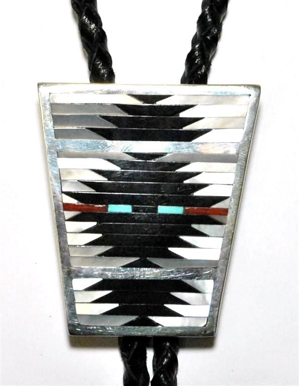 Zuni Multi-Stone Large Trapezoid Sterling Silver Bolo Tie - Charlotte Dishta