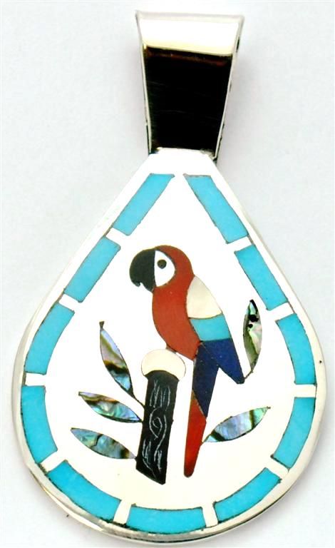 Zuni Multi-Stone Macaw Pendant - Dennis & Nancy Edaakie