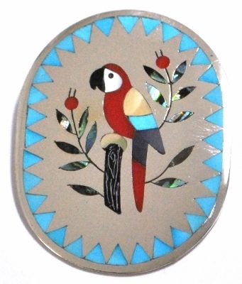 Zuni Multi-Stone Macaw Sterling Silver Pendant & Pin - Dennis & Nancy Edaakie