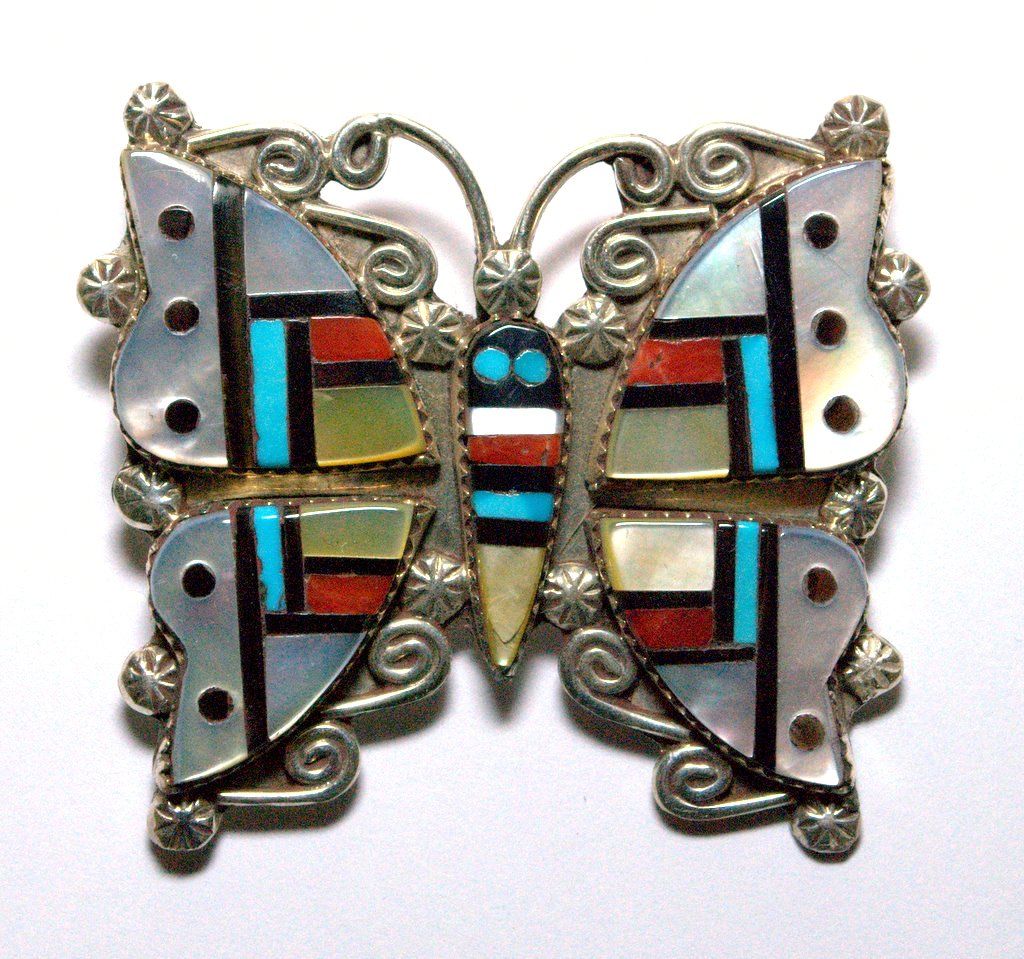 Zuni Multi-Stone Medium Butterfly Pendant & Pin