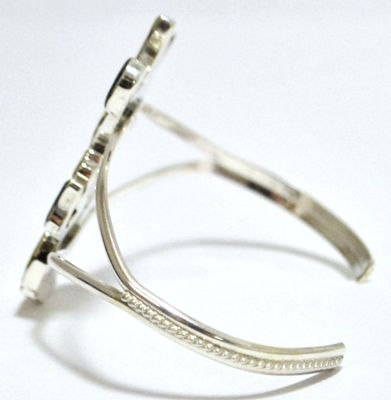 Measures 5-5/8" around with a 1" gap, 2" wide. Bracelet is malleable and easily bends to adjust to your wrist.