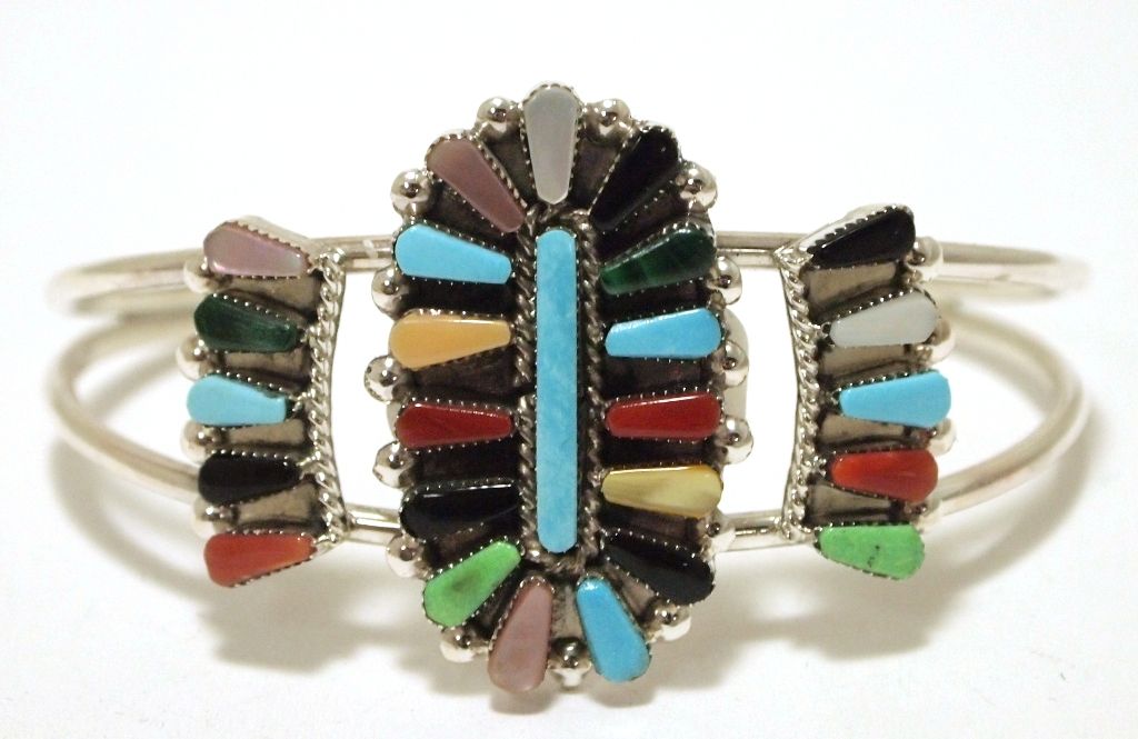 Zuni Multi-Stone Needlepoint Sterling Silver Cuff Bracelet - Valencia Halusewa