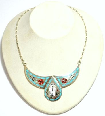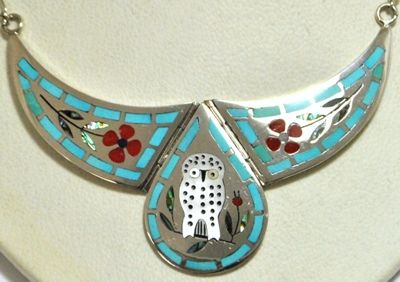 Zuni Multi-Stone Owl Sterling Silver Necklace - Dennis & Nancy Edaakie