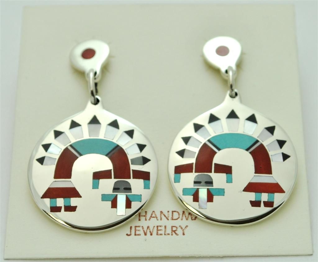 Zuni Multi-Stone Rainbow Kachina Earrings - Fred & Lolita Natachu