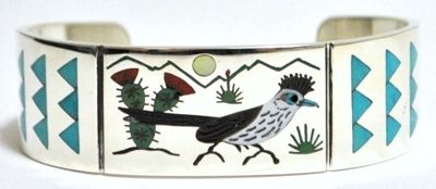 Zuni Multi-Stone Roadrunner Sterling Silver Cuff Bracelet - Rudell & Nancy Laconsello