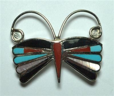 Zuni Multi-Stone Small Butterfly Pendant & Pin