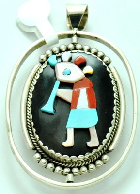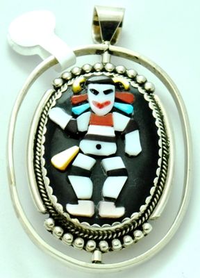 Zuni Multi-Stone Spinner Clown and Kokopelli Pendant - Beverly Etsate