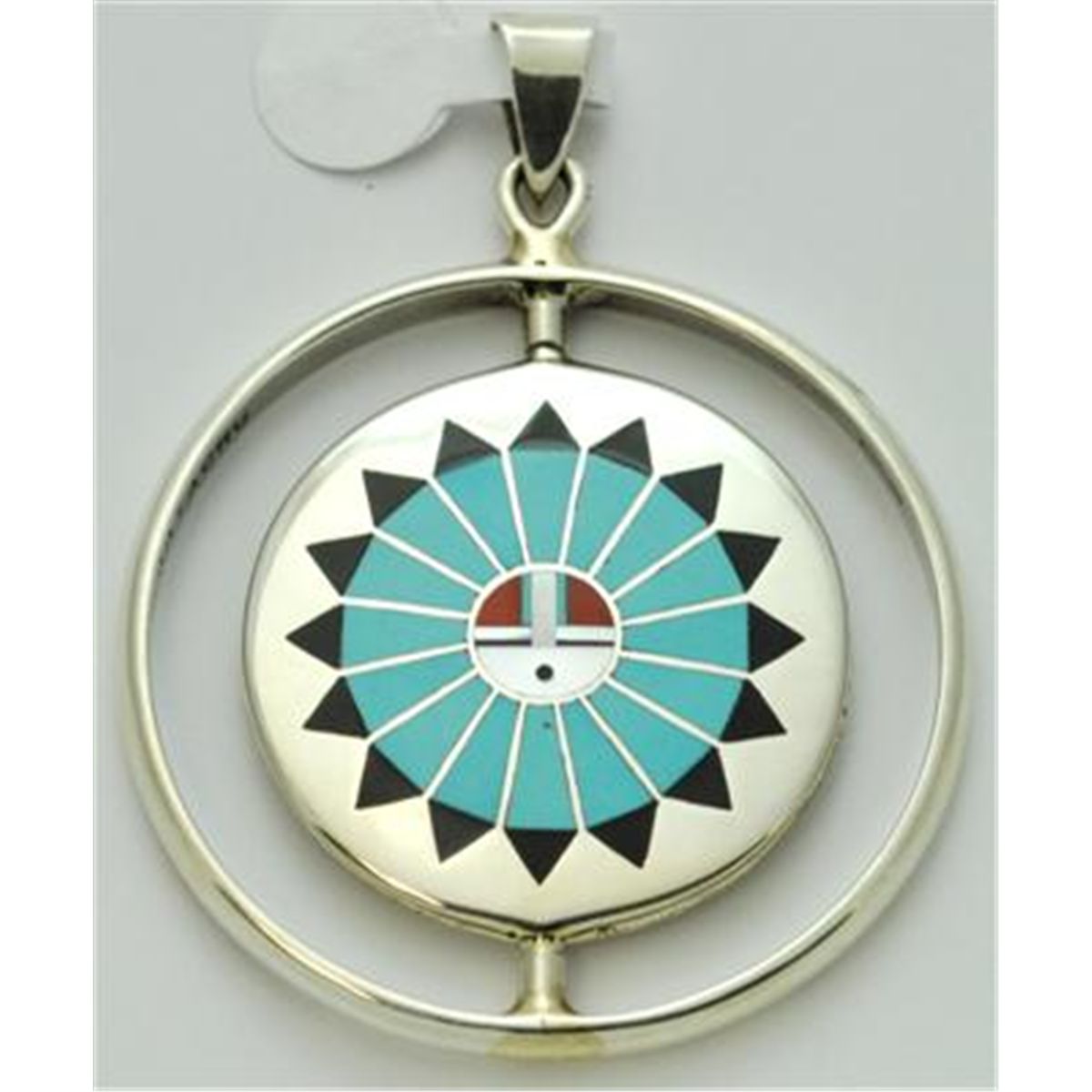 Zuni Multi-Stone Spinner Knifewing Kachina and Sun Design Pendant - Fred & Lolita Natachu