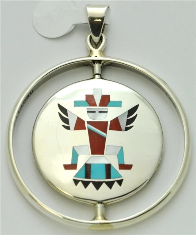 Zuni Multi-Stone Spinner Knifewing Kachina and Sun Design Pendant - Fred & Lolita Natachu
