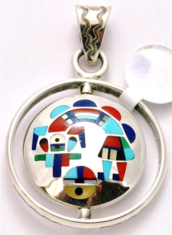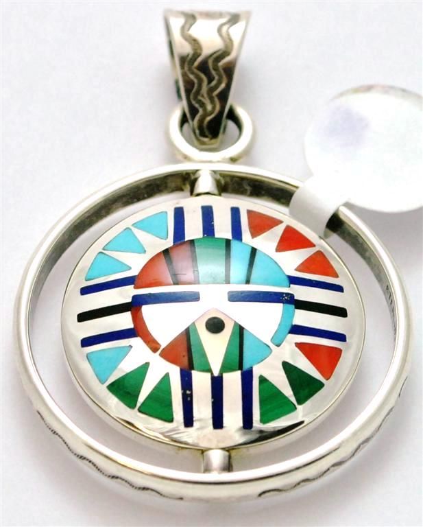 Zuni Multi-Stone Spinner Rainbow Kachina and Sun Design Small Pendant - Pete Natachu