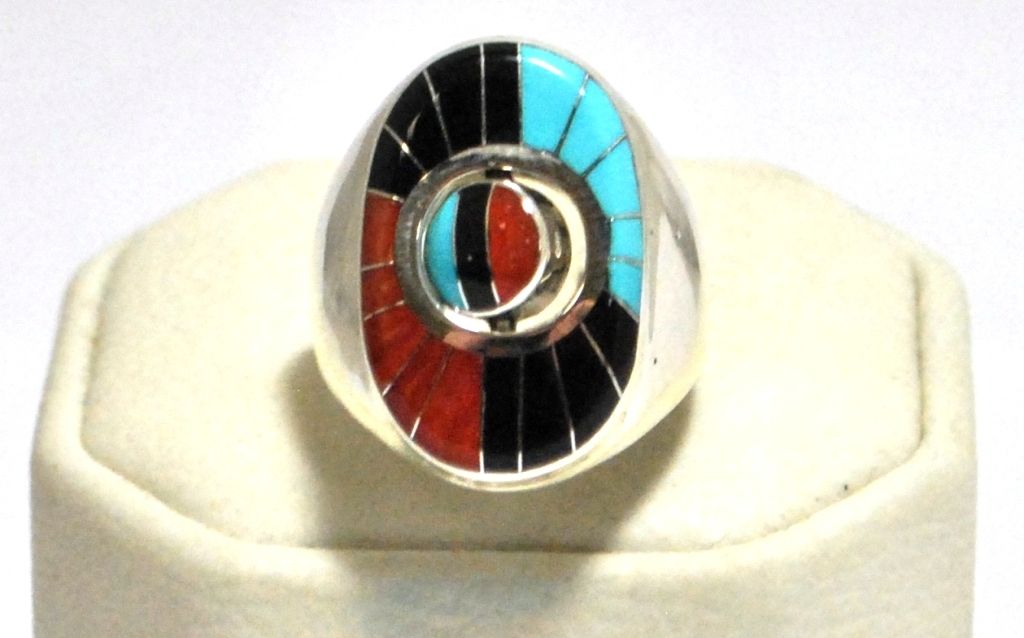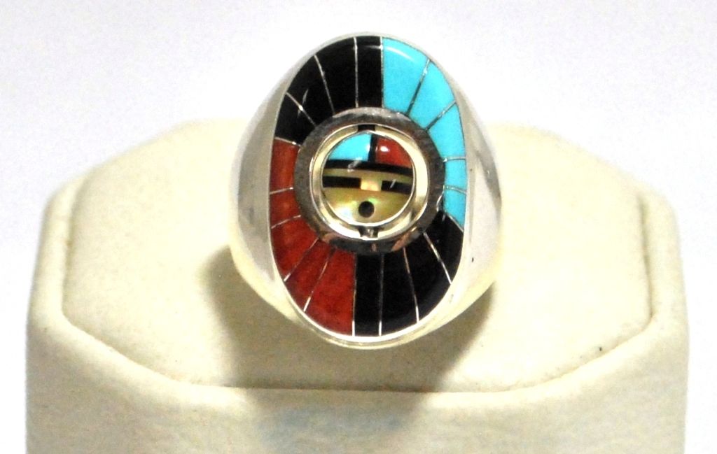 Zuni Multi-Stone Spinner Sunface Sterling Silver Men's Ring - Don Dewa