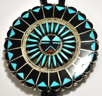 Zuni Multi-Stone Sterling Silver Bolo Tie - Ben & Shirley Tzuni