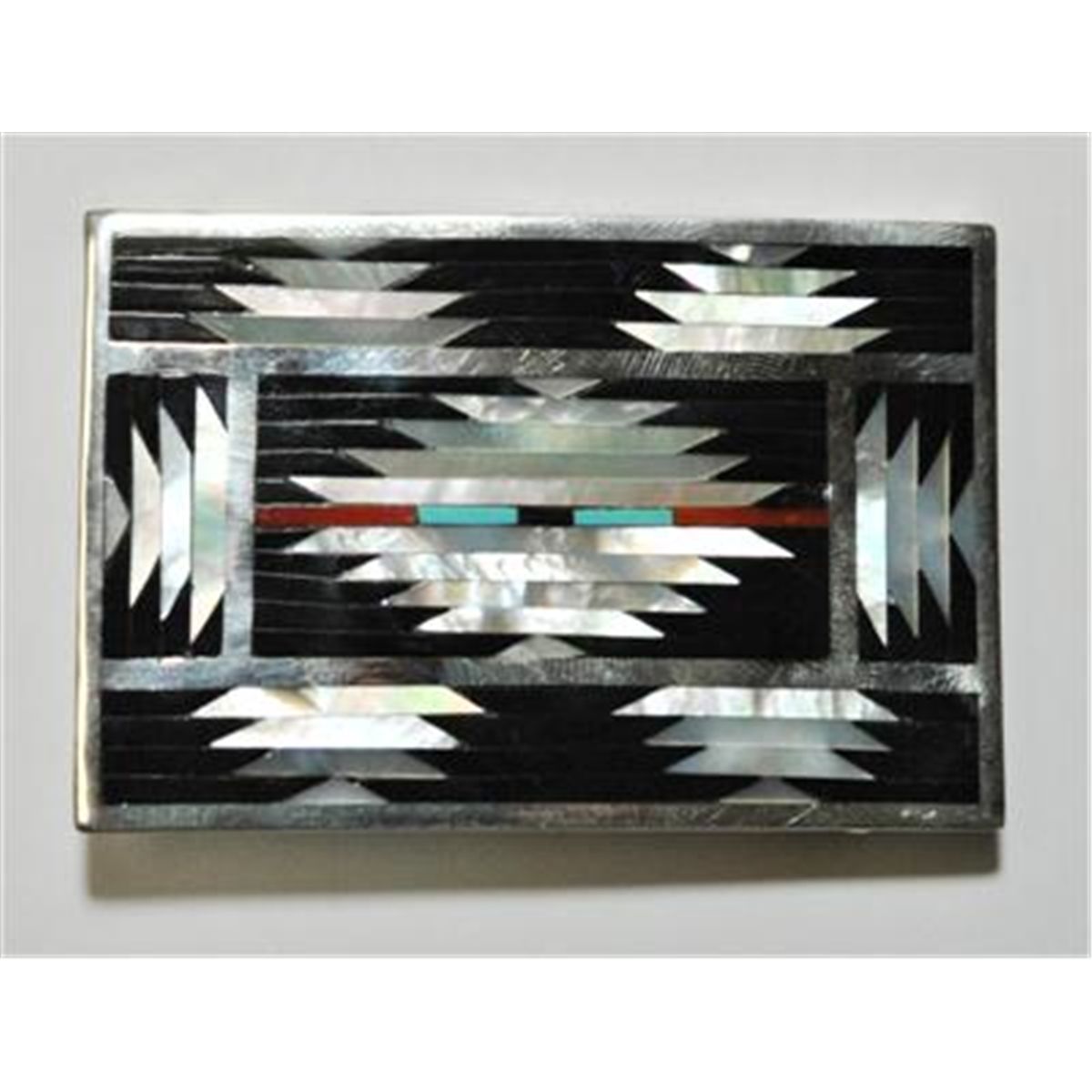Measures 1-7/8" tall by 2-3/4" wide. Buckle on back measures 1-5/8".