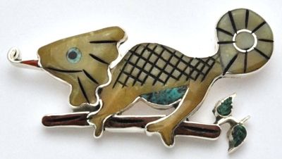 Zuni Multi-Stone Sterling Silver Chameleon Pendant & Pin - Valerie Comosona