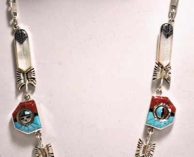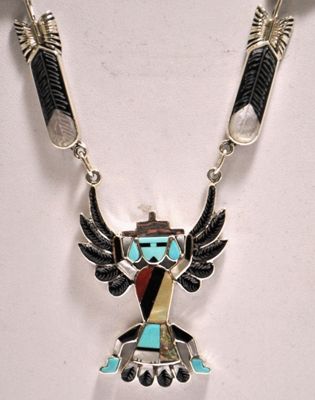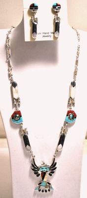 Zuni Multi-Stone Sterling Silver Eagle Dancer with Spinners Necklace & Earrings Set - Don Dewa