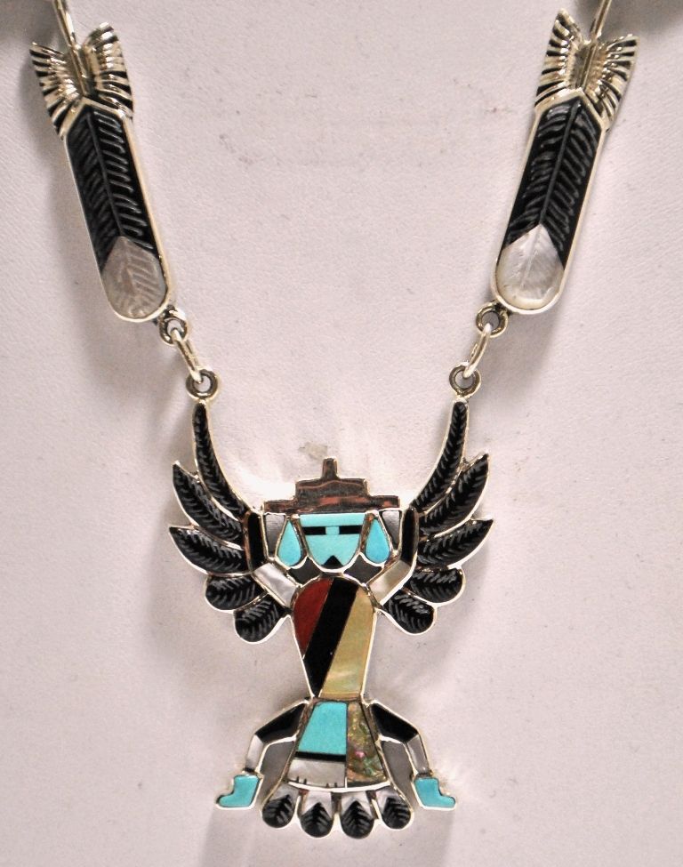 Zuni Multi-Stone Sterling Silver Eagle Dancer with Spinners Necklace & Earrings Set - Don Dewa