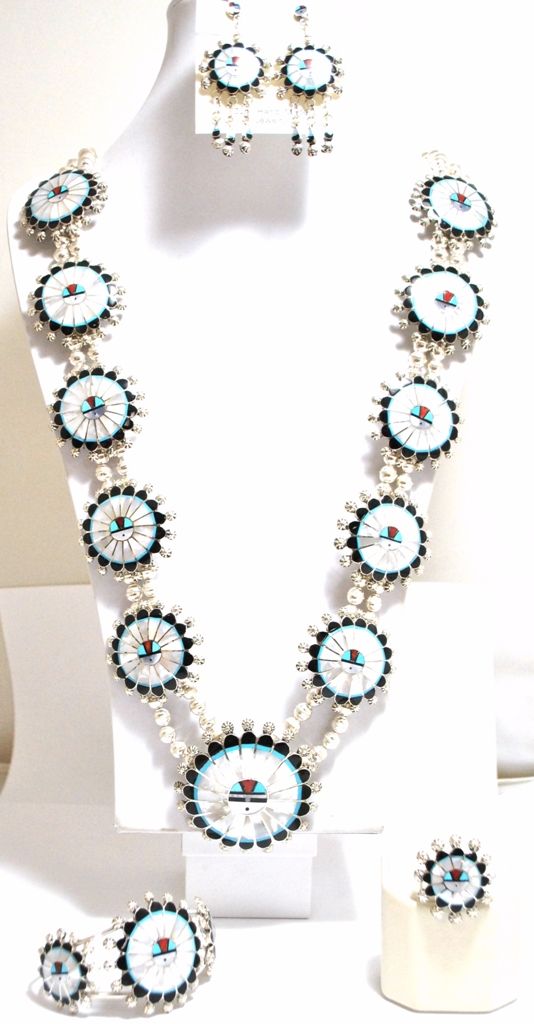 Zuni Multi-Stone Sun Face Inlay Sterling Silver 4-Piece Set - Abel Soseeah