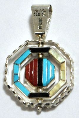 Zuni Multi-Stone Sun Face Multi-Spinner Sterling Silver Pendant - Don Dewa