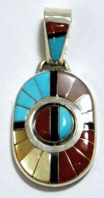 Zuni Multi-Stone Sun Face Spinner Sterling Silver Pendant - Don Dewa