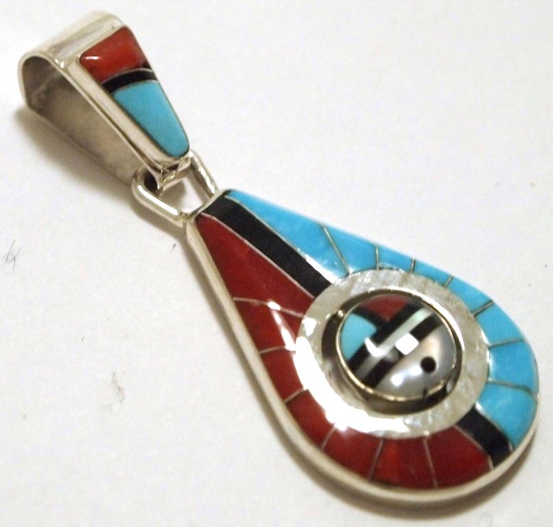 Zuni Multi-Stone Sun Face Spinner Sterling Silver Pendant - Don Dewa