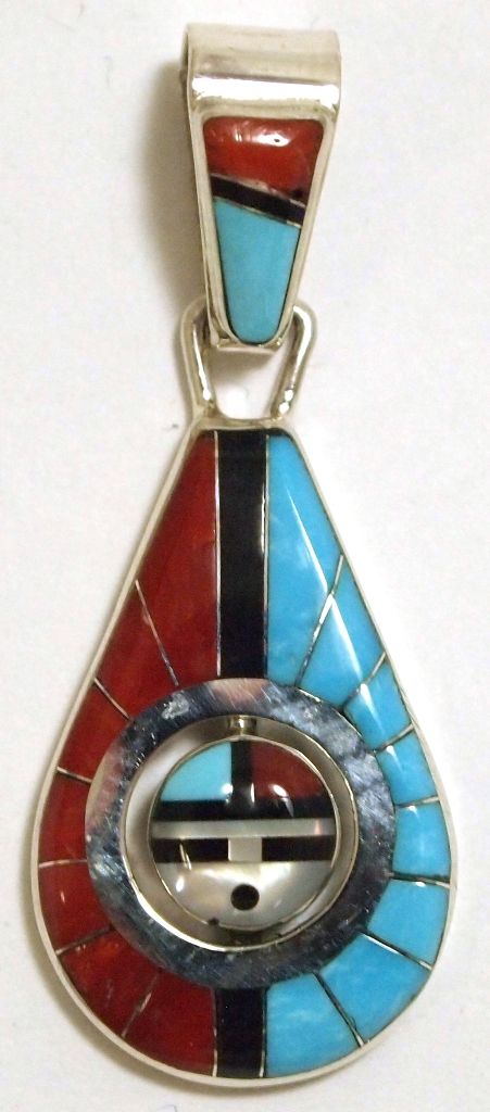 Zuni Multi-Stone Sun Face Spinner Sterling Silver Pendant - Don Dewa