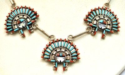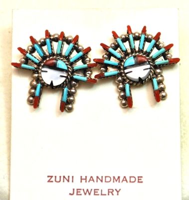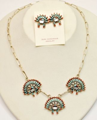 Zuni Multi-Stone Sunface Sterling Silver Necklace & Earrings Set - Edmond Cooeyate